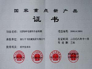 國(guo)家火炬計劃(hua)項(xiang)目證(zheng)書