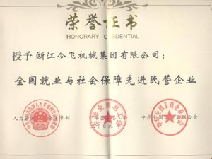 全國就業(ye)與社會(hui)保(bao)障先(xian)進民營企業(ye)證書(shu)