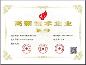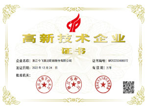 浙江今飛(fei)機械有限(xian)公司榮(rong)獲高新技(ji)術企(qi)業證書(shu)
