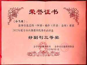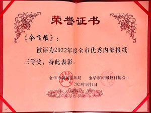 今飛報-2022年(nian)度全(quan)市優秀內部報紙三等獎