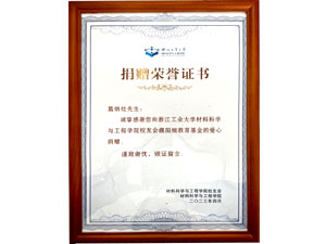 葛炳灶先生向浙江工業大學捐贈(zeng)榮譽證書
