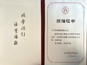 今飛控股向浙江(jiang)師范大學(xue)捐(juan)贈證書