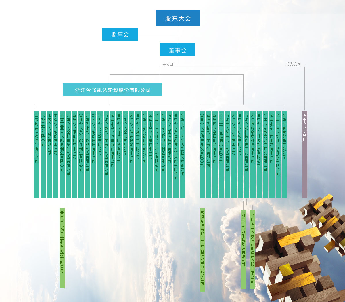 今(jin)飛控(kong)股(gu)集團有限公(gong)司始建(jian)于1959年,公(gong)司總部(bu)位于金華市開發區,于2000年開始被列入金華市政府(fu)重點(dian)扶持優勢(shi)企(qi)(qi)業(ye)(ye),相繼被評為(wei)中國(guo)汽(qi)車(che)零部(bu)件(jian)(jian)百強企(qi)(qi)業(ye)(ye)、中國(guo)摩托車(che)行業(ye)(ye)零部(bu)件(jian)(jian)優勢(shi)企(qi)(qi)業(ye)(ye)、中國(guo)汽(qi)車(che)零部(bu)件(jian)(jian)車(che)輪行業(ye)(ye)龍頭(tou)企(qi)(qi)業(ye)(ye)、全國(guo)就業(ye)(ye)與社會保障先(xian)進民營(ying)企(qi)(qi)業(ye)(ye)、浙江(jiang)省工業(ye)(ye)行業(ye)(ye)龍頭(tou)骨干企(qi)(qi)業(ye)(ye)...