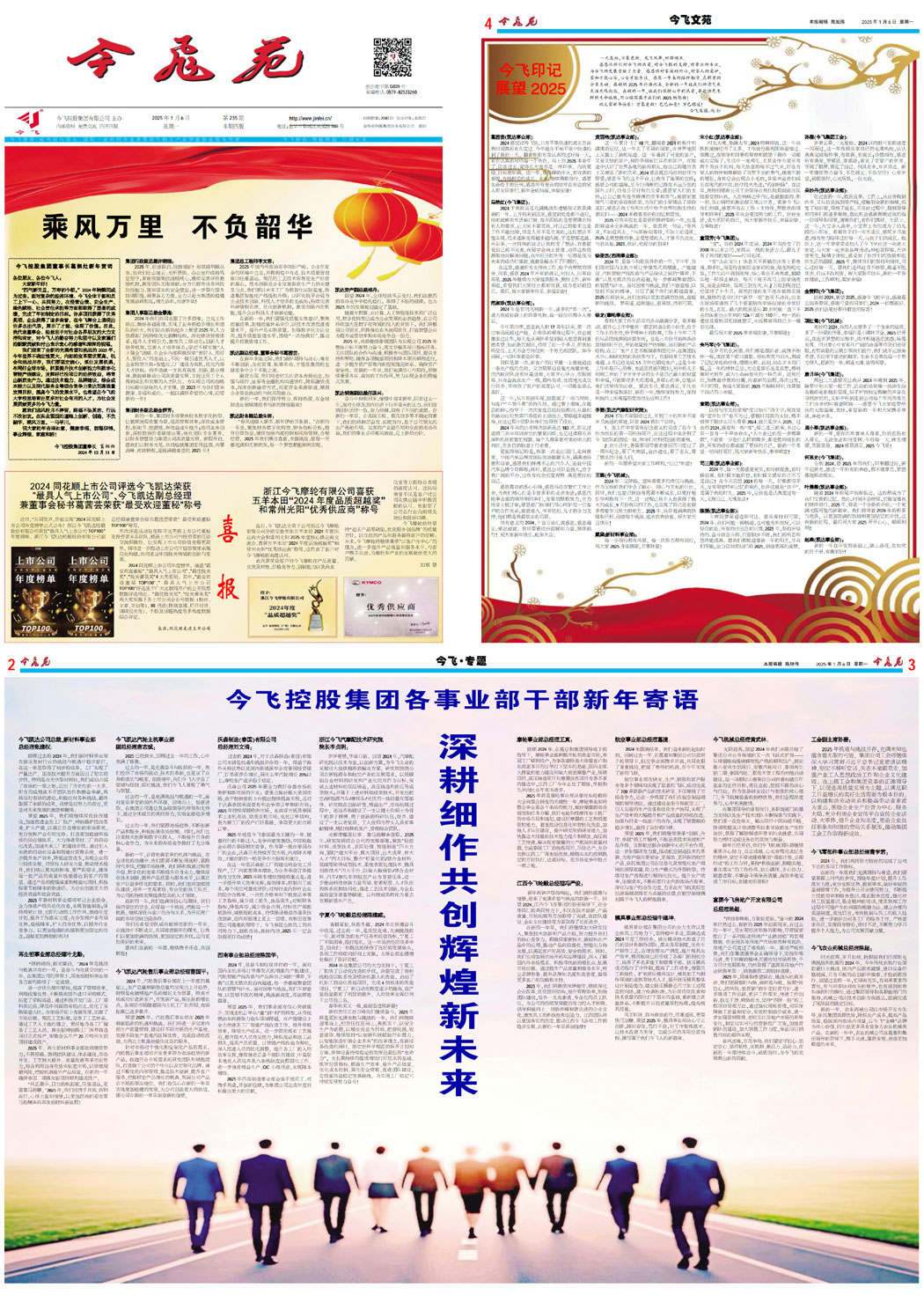 乘風萬里 不(bu)負(fu)韶華——今飛控(kong)股集(ji)團董事長葛炳灶新年賀詞乘風萬(wan)里 不負韶華喜(xi)報(bao)丨浙江今(jin)飛摩輪有限公司喜(xi)獲五(wu)羊本田“2024年度品質超越(yue)獎”和常州光陽“優秀供(gong)應商”稱號喜報丨今飛(fei)凱達榮獲2024同花順上市公司"最(zui)具人(ren)氣(qi)上市公司"、今飛(fei)凱達副(fu)總經理兼(jian)董(dong)事(shi)會秘(mi)書葛(ge)茜蕓榮獲"最(zui)受歡迎董(dong)秘(mi)"稱(cheng)號(hao)今飛(fei)印記(ji)展(zhan)望(wang)2025今飛控股集團各事業部干部新年寄(ji)語——深耕細作共創輝煌新未(wei)來