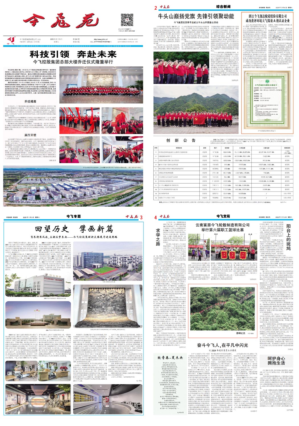 科技引領 奔赴未來——今(jin)飛控股集團總部大樓(lou)喬遷儀式(shi)隆重(zhong)舉(ju)行牛頭(tou)(tou)山(shan)巔(dian)揚黨旗 先鋒(feng)引(yin)領聚動(dong)能——今飛集團黨員骨干赴武義(yi)牛頭(tou)(tou)山(shan)開展登山(shan)活(huo)動(dong)浙江今飛凱(kai)達(da)輪轂股份有限公(gong)司(si)成功獲評環境大氣績(ji)效A級(ji)認證(zheng)企(qi)業創 新 公 告回望歷史 擘(bo)畫(hua)新(xin)篇:駕長舸乘風(feng)浪(lang),立潮(chao)頭夢未央------今飛控(kong)股(gu)集團(tuan)新(xin)大樓展廳(ting)建設思路求學之路奮斗(dou)今飛人(ren),在(zai)平凡中閃光——記2024年度(du)優(you)秀員工(gong)方國文呵護身心,擁抱生活陽臺(tai)上的(de)斑鳩致(zhi)青春-夏未央云南富(fu)源(yuan)今飛輪(lun)轂制造有限公司舉行第(di)六屆(jie)職工籃球比賽(sai)