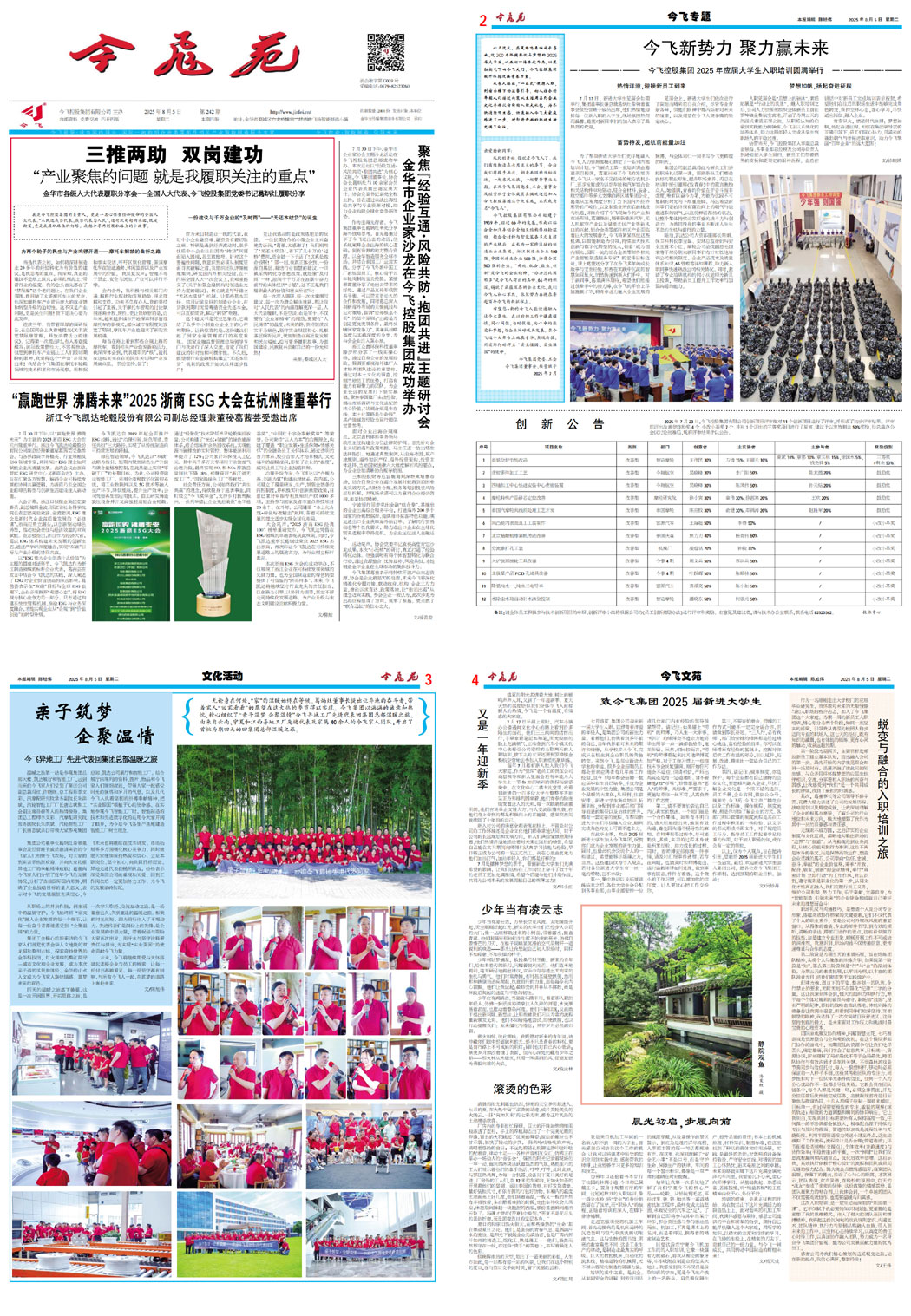 三推兩助 雙崗建(jian)功——產業聚焦的(de)(de)問題 就是我履職關注的(de)(de)重點(dian)(金華市各級人(ren)大代表履職分(fen)享會--全國(guo)人(ren)大代表、今飛控股集團黨委書記葛(ge)炳(bing)灶履職分(fen)享)金(jin)華市(shi)企業家沙龍在今飛控股(gu)集團成功舉辦——聚焦“經驗互通?風險共防?抱團共進”主題研討會(hui)“贏跑(pao)世界 沸(fei)騰未來”2025浙商ESG大會在杭州(zhou)隆重舉行,浙江今(jin)飛凱達(da)輪轂股份有限(xian)公司副總經理兼董秘葛茜蕓受(shou)邀出席熱烈歡(huan)迎(ying)新同事入職今(jin)飛新勢力 聚力贏未來(lai)——今(jin)飛控股集(ji)團2025年應(ying)屆大學生入職(zhi)培訓圓滿舉行創 新 公 告“親(qin)子筑夢 企聚溫(wen)情”——今飛異(yi)地工廠先進代表(biao)回集團總部溫(wen)暖之旅晨光初啟,步履向前滾(gun)燙的(de)色(se)彩又(you)是一年(nian)迎新季(ji)致今飛(fei)集團2025屆新進大學生少(shao)年當(dang)有(you)凌(ling)云志蛻變與融合的入(ru)職(zhi)培訓之旅
