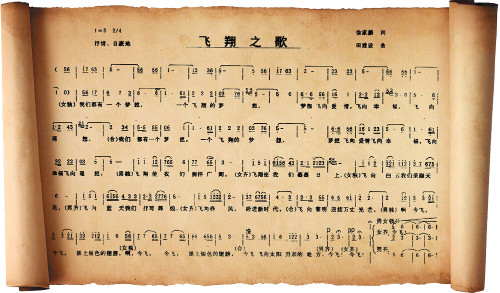 1997年由(you)金(jin)華(hua)電視臺文藝部主任,著名學(xue)者徐(xu)家麟,創(chuang)作了“今飛之歌”的歌詞(ci),并(bing)以(yi)《飛翔之歌》命名,由(you)現金(jin)華(hua)市(shi)規劃局婺城分局局長田建(jian)設譜曲(qu)。