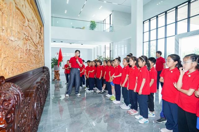 首先,今(jin)(jin)(jin)飛(fei)凱達(da)副總(zong)(zong)經理(li)兼董事(shi)會秘書葛茜蕓帶領孩子(zi)們(men)來到了(le)辦(ban)公樓大廳(ting)木雕(diao)屏風前(qian)(qian),做了(le)屏風介紹:這(zhe)座屏風記載了(le)今(jin)(jin)(jin)飛(fei)發(fa)展(zhan)史,它以(yi)今(jin)(jin)(jin)飛(fei)《飛(fei)翔之(zhi)歌》為(wei)主線,以(yi)今(jin)(jin)(jin)飛(fei)重(zhong)要歷史瞬間,貫穿全屏,訴說了(le)今(jin)(jin)(jin)飛(fei)堅守實體制造業(ye)(ye)66年(nian)艱苦(ku)創(chuang)業(ye)(ye)、奮力拼搏的(de)(de)(de)(de)勵志故事(shi)。這(zhe)座屏風把(ba)(ba)老一(yi)(yi)輩今(jin)(jin)(jin)飛(fei)人艱苦(ku)創(chuang)業(ye)(ye),始終秉承實業(ye)(ye)強(qiang)國的(de)(de)(de)(de)精神(shen),創(chuang)造一(yi)(yi)個(ge)又(you)一(yi)(yi)個(ge)奇(qi)跡的(de)(de)(de)(de)故事(shi)篆刻得(de)栩(xu)(xu)栩(xu)(xu)如(ru)生,也把(ba)(ba)新一(yi)(yi)代今(jin)(jin)(jin)飛(fei)人接(jie)力前(qian)(qian)行,跟隨社會發(fa)展(zhan)的(de)(de)(de)(de)腳步,經過改制以(yi)后二(er)十多(duo)年(nian)的(de)(de)(de)(de)跨越式發(fa)展(zhan)刻畫得(de)淋漓盡(jin)致。看著這(zhe)座屏風上的(de)(de)(de)(de)每(mei)一(yi)(yi)個(ge)人物雕(diao)刻,聽(ting)著葛總(zong)(zong)的(de)(de)(de)(de)娓(wei)娓(wei)道(dao)來,孩子(zi)們(men)若有所(suo)思,深受震撼,覺得(de)今(jin)(jin)(jin)飛(fei)的(de)(de)(de)(de)創(chuang)業(ye)(ye)者很不(bu)容易(yi),很了(le)不(bu)起,紛紛為(wei)他們(men)的(de)(de)(de)(de)堅守點贊。