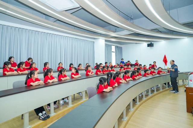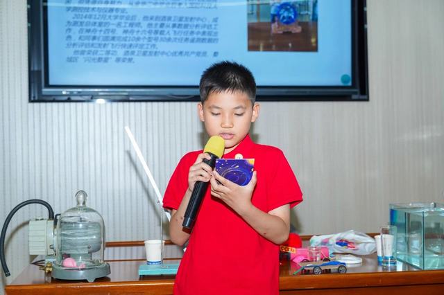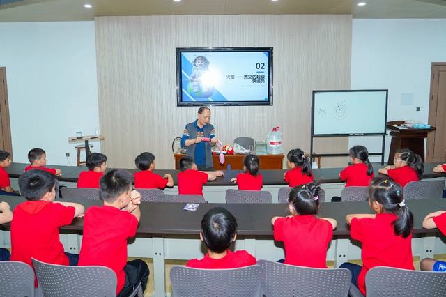 現場參(can)觀結束后(hou),孩子們(men)們(men)來到企業文化(hua)中(zhong)心階梯教室(shi)參(can)加名師(shi)(shi)講課。此(ci)次活動集(ji)團特別邀請金華一中(zhong)退休教師(shi)(shi)陳保平(ping)老師(shi)(shi)開(kai)展“飛向太空奇妙之旅(lv)”主題講座。陳老師(shi)(shi)深(shen)耕物(wu)理教學(xue)(xue)四十(shi)余年,曾任(ren)金華一中(zhong)物(wu)理教研組(zu)長,培養(yang)出上(shang)百(bai)位博(bo)士/博(bo)士后(hou)人(ren)(ren)才,執(zhi)掌金外三屆創(chuang)新(xin)班教學(xue)(xue),系學(xue)(xue)科帶頭人(ren)(ren)。現受聘(pin)火(huo)(huo)(huo)(huo)箭軍授課,助力(li)士官考取(qu)解放軍火(huo)(huo)(huo)(huo)箭工程(cheng)大學(xue)(xue)。講座開(kai)始(shi)前,先由金華師(shi)(shi)范附屬小學(xue)(xue)杜(du)(du)葛瑾同學(xue)(xue)分享了今(jin)年四月同爸(ba)爸(ba)媽媽一起受邀請去酒泉(quan)東風航天城,觀看(kan)神舟(zhou)二十(shi)號載人(ren)(ren)火(huo)(huo)(huo)(huo)箭發射的(de)精彩故(gu)事。杜(du)(du)同學(xue)(xue)描述生動并且用一張張照(zhao)片向同學(xue)(xue)們(men)耐心講解這次難忘(wang)的(de)旅(lv)行(xing),其中(zhong)最為激動的(de)是(shi)親眼看(kan)見火(huo)(huo)(huo)(huo)箭升天的(de)壯觀景象。火(huo)(huo)(huo)(huo)箭直(zhi)沖(chong)云霄(xiao),作(zuo)為新(xin)一代的(de)少年,內心沸騰,久(jiu)久(jiu)不(bu)能平(ping)靜(jing),自豪(hao)感油(you)然(ran)而生,心中(zhong)滿(man)是(shi)對(dui)航天員的(de)崇(chong)敬與祝福。