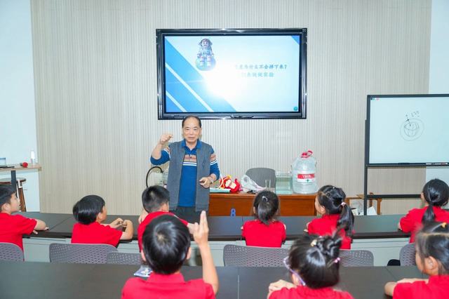 陳(chen)老(lao)(lao)師接著杜同(tong)學的(de)(de)話(hua)題,開始了(le)今天的(de)(de)講(jiang)(jiang)座。講(jiang)(jiang)座中陳(chen)老(lao)(lao)師利(li)用(yong)一個(ge)(ge)個(ge)(ge)生動有趣的(de)(de)實驗,向(xiang)孩(hai)子們(men)解釋了(le)衛(wei)星不會掉落的(de)(de)原因,還告訴孩(hai)子因為反沖推力作用(yong),火箭才會一飛沖天,讓(rang)孩(hai)子們(men)了(le)解宇航服的(de)(de)重要性。講(jiang)(jiang)座中,陳(chen)老(lao)(lao)師還時不時向(xiang)孩(hai)子們(men)進行提問,孩(hai)子們(men)爭(zheng)先恐(kong)后地舉(ju)手發言,整(zheng)個(ge)(ge)講(jiang)(jiang)座氣(qi)氛歡樂、輕松。此次講(jiang)(jiang)座讓(rang)孩(hai)子們(men)從(cong)小種(zhong)(zhong)下(xia)科學的(de)(de)種(zhong)(zhong)子,播下(xia)實業(ye)(ye)強國(guo)(guo)的(de)(de)藍圖,讓(rang)美好的(de)(de)夢想在(zai)孩(hai)子們(men)心中生根發芽,在(zai)來年或(huo)許(xu)就在(zai)這群(qun)孩(hai)子里走出科學家、教(jiao)育家、企業(ye)(ye)家…為祖國(guo)(guo)強盛(sheng)貢獻(xian)新一代力量!