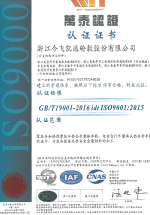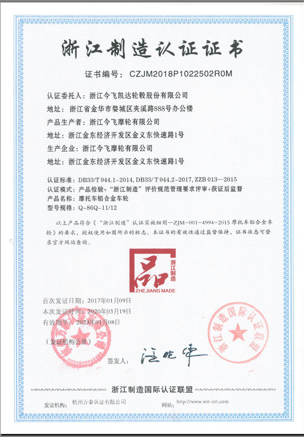 公司明確提出 “追求產品(pin)零缺陷,優化(hua)服務(wu)創品(pin)牌”的質量方針(zhen),在(zai)生(sheng)產各工(gong)序、環節建立了(le)嚴格的質量控制體(ti)(ti)(ti)系(xi),1998年公司就通過了(le)IS09001質量體(ti)(ti)(ti)系(xi)認證(zheng)(zheng)(zheng),2004年通過了(le)QS-9000、ISO/TS16949質量保證(zheng)(zheng)(zheng)體(ti)(ti)(ti)系(xi)審核(he),又先后通過了(le)美(mei)國(guo)SFI、日本VIA實(shi)驗室認證(zheng)(zheng)(zheng)、德(de)國(guo)TUV認證(zheng)(zheng)(zheng),并通過了(le)北京奔馳、一(yi)汽夏利、昌河鈴木(mu)、豪(hao)爵鈴木(mu)、錢(qian)江集團、新大(da)洲本田等(deng)公司的第二方審核(he)和美(mei)國(guo)戴姆勒(le)(le)-克萊斯勒(le)(le)、美(mei)國(guo)哈雷、意大(da)利比(bi)亞喬等(deng)國(guo)際整車廠商的考評。于2007年4月(yue)獲得(de)環境管理體(ti)(ti)(ti)系(xi)認證(zheng)(zheng)(zheng)證(zheng)(zheng)(zheng)書。